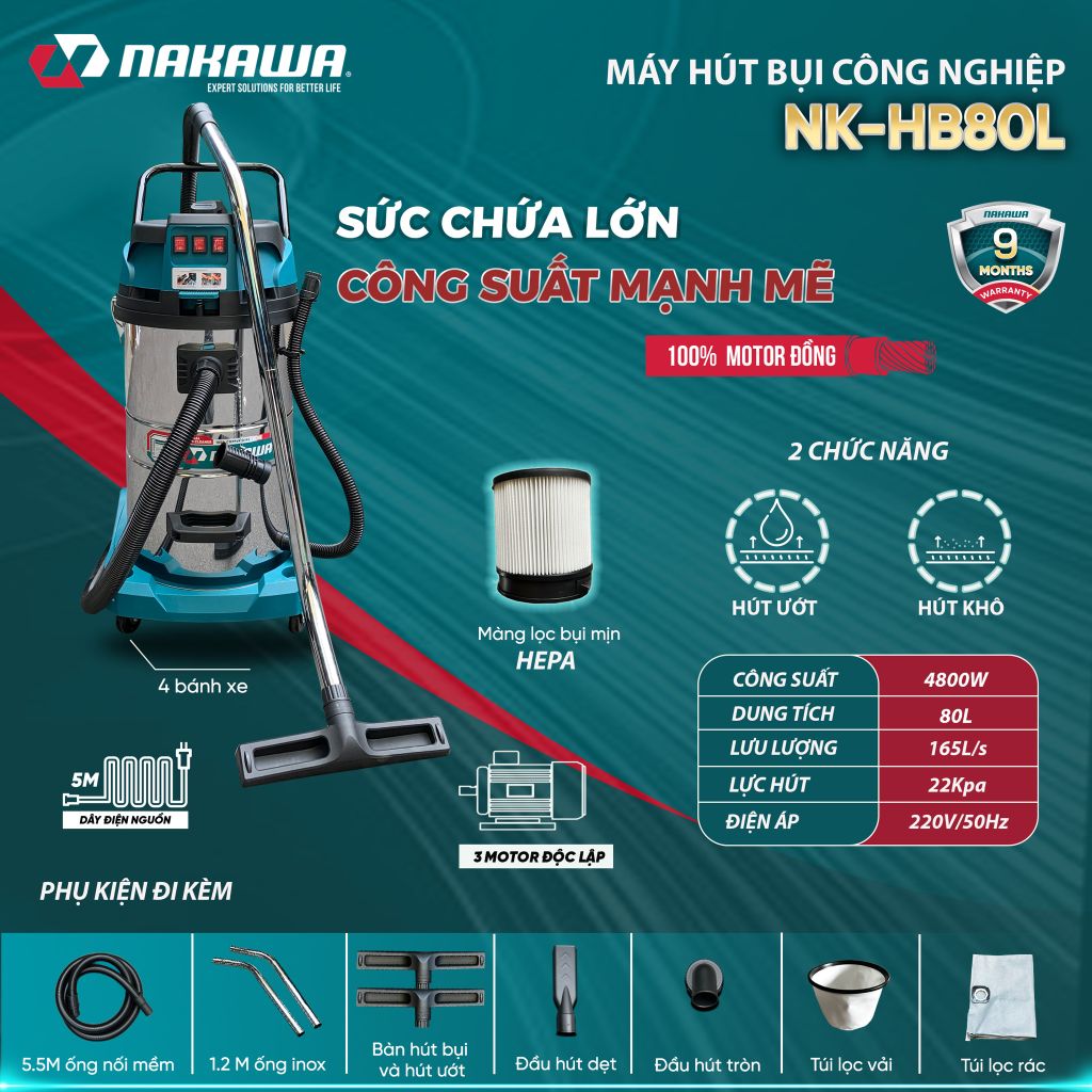 2. Ưu điểm nổi bật của máy hút bụi công nghiệp NAKAWA NK-HB80L