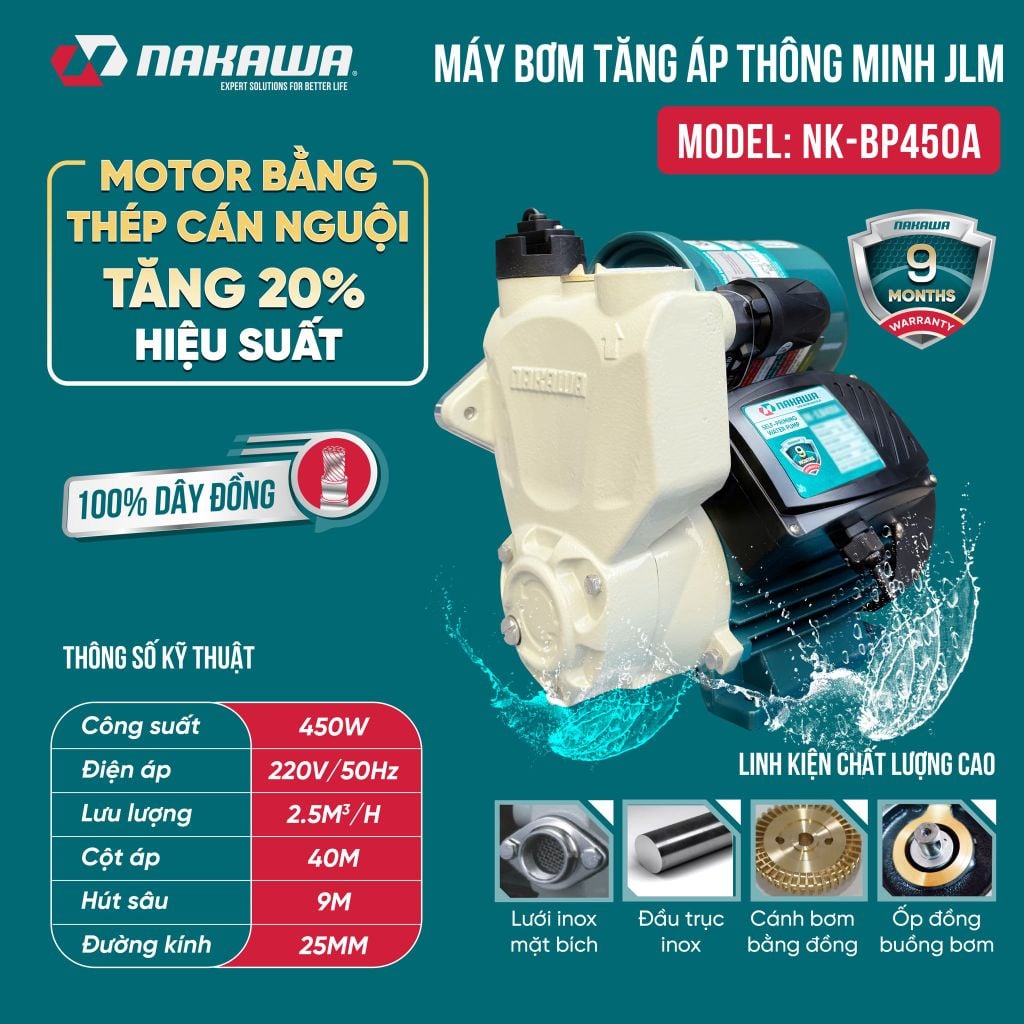 Máy bơm tăng áp thông minh NK-BP450A là sản phẩm chất lượng cao theo tiêu chuẩn Nhật Bản, được sử dụng để hút nước và bơm lên các vị trí cao, hay dùng để tăng áp các thiết bị đầu ra như sen vòi, máy giặt, bình nóng lạnh, và các thiết bị khác… Máy bơm này không chỉ đảm bảo hiệu suất hoạt động mạnh mẽ mà còn được tích hợp các tính năng thông minh, giúp tăng độ an toàn và kéo dài tuổi thọ.