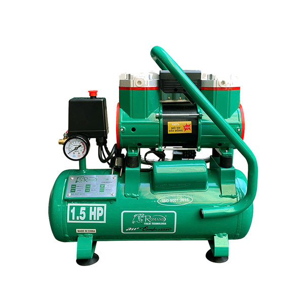 Máy nén khí không dầu, siêu êm, tốc nhanh ROMANO ROMA15-12 dung tích bình 12L, công suất 1.5HP, 2 đầu khí ra dây truyền công nghệ Italy cao cấp.